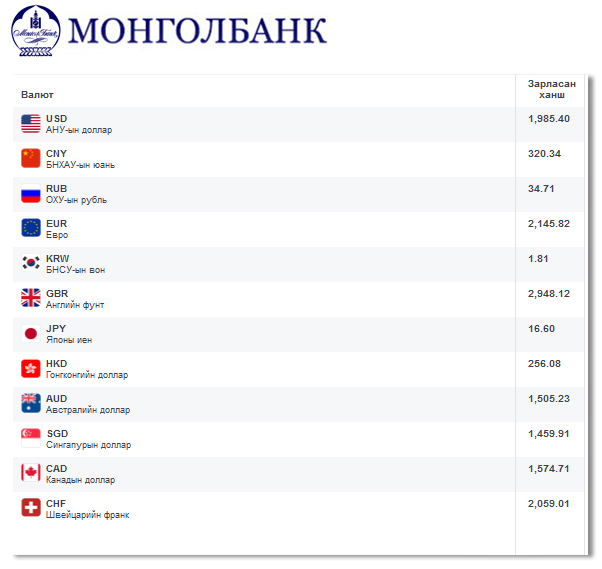 Өнөөдрийн байдлаар валютын ханш Монголбанк, арилжааны банкуудад ямар байгааг хүргэе.