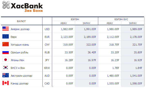 | Өнөөдрийн валютын ханш /2015.04.03/ | ||