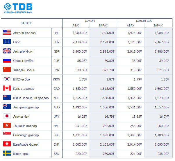 Өнөөдрийн байдлаар валютын ханш Монголбанк, арилжааны банкуудад ямар байгааг хүргэе.