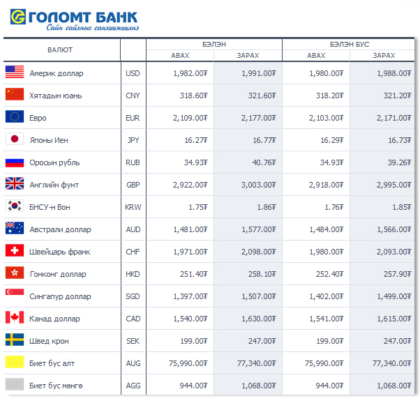 | Өнөөдрийн валютын ханш /2015.04.09/ | ||
