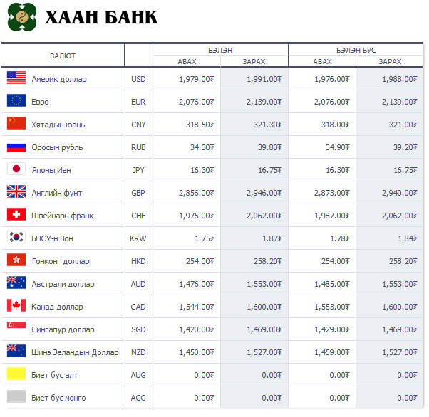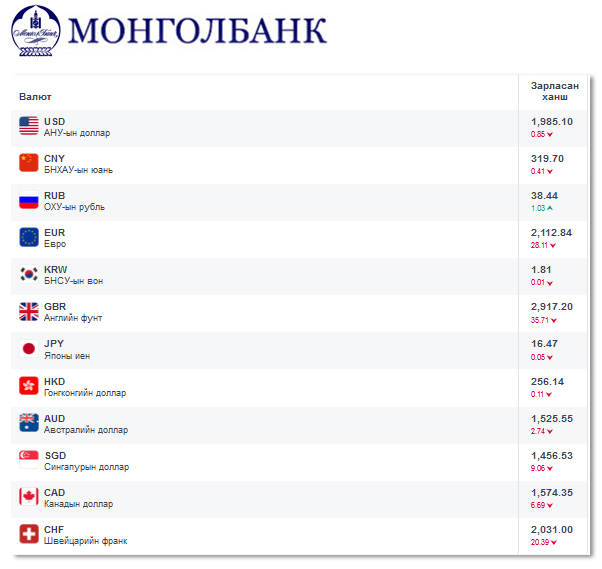 Өнөөдрийн байдлаар валютын ханш Монголбанк, арилжааны банкуудад ямар байгааг хүргэе.