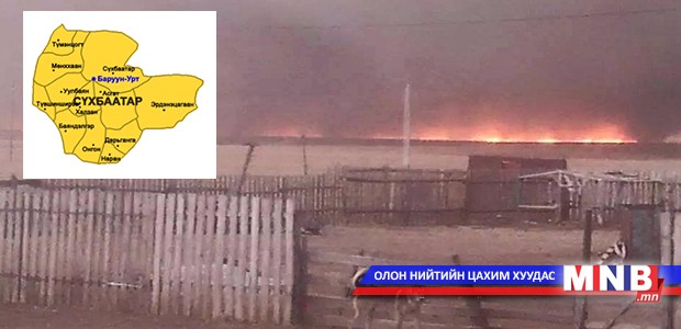 Өнгөрөгч 12-ны өдөр Сүхбаатар аймгийн Түмэнцогт, Дорнод аймгийн Матад сумын заагт хээрийн түймэр гарч, Сүхбаатар аймгийн түймрийг цурманд оруулсан бол Дорнод аймагт гарсан галыг албаныхан унтрааж чадахгүй байгаа талаар бид өмнө нь мэдээлсэн. Тэгвэл өчигдөр үдээс хойш боссон их салхинаар Сүхбаатар аймгийн цурманд орсон байсан гал дахин асч, цурамнаасаа гарч гамшгийн байдалд очтолоо хүндэрсэн байна. Зарим эх сурвалжуудын мэдээлснээр түймэр сумын төв рүү орж ирлээ гэж байсан юм. Энэ талаар тус аймгийн Гамшгаас хамгаалах төвийн бэлэн байдал хариуцсан ахлах мэргэжилтэн, хошууч Г.Батгэрэлтэй холбогдож тодрууллаа.