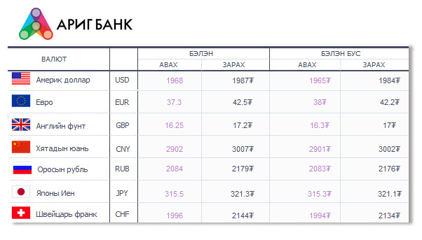 Өнөөдрийн байдлаар валютын ханш Монголбанк, арилжааны банкуудад ямар байгааг хүргэе.