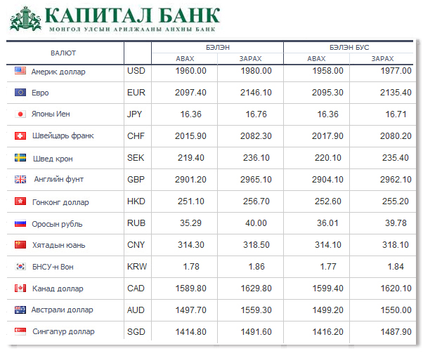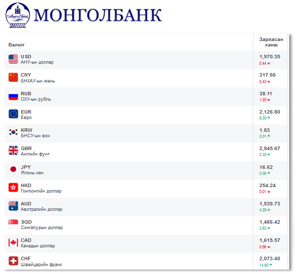 Өнөөдрийн байдлаар валютын ханш Монголбанк, арилжааны банкуудад ямар байгааг хүргэе.