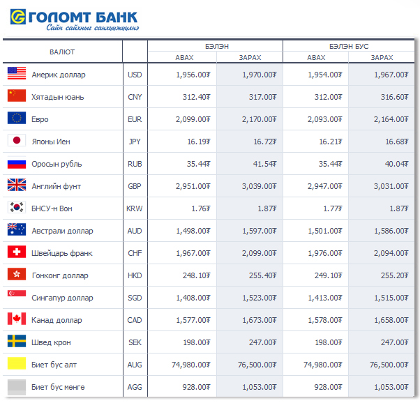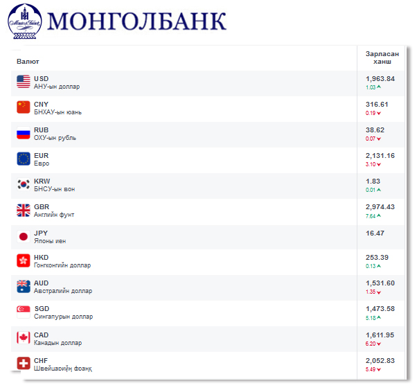 Өнөөдрийн байдлаар валютын ханш Монголбанк, арилжааны банкуудад ямар байгааг хүргэе.