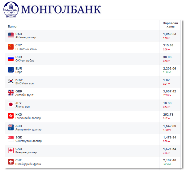 Өнөөдрийн байдлаар валютын ханш Монголбанк, арилжааны банкуудад ямар байгааг хүргэе.