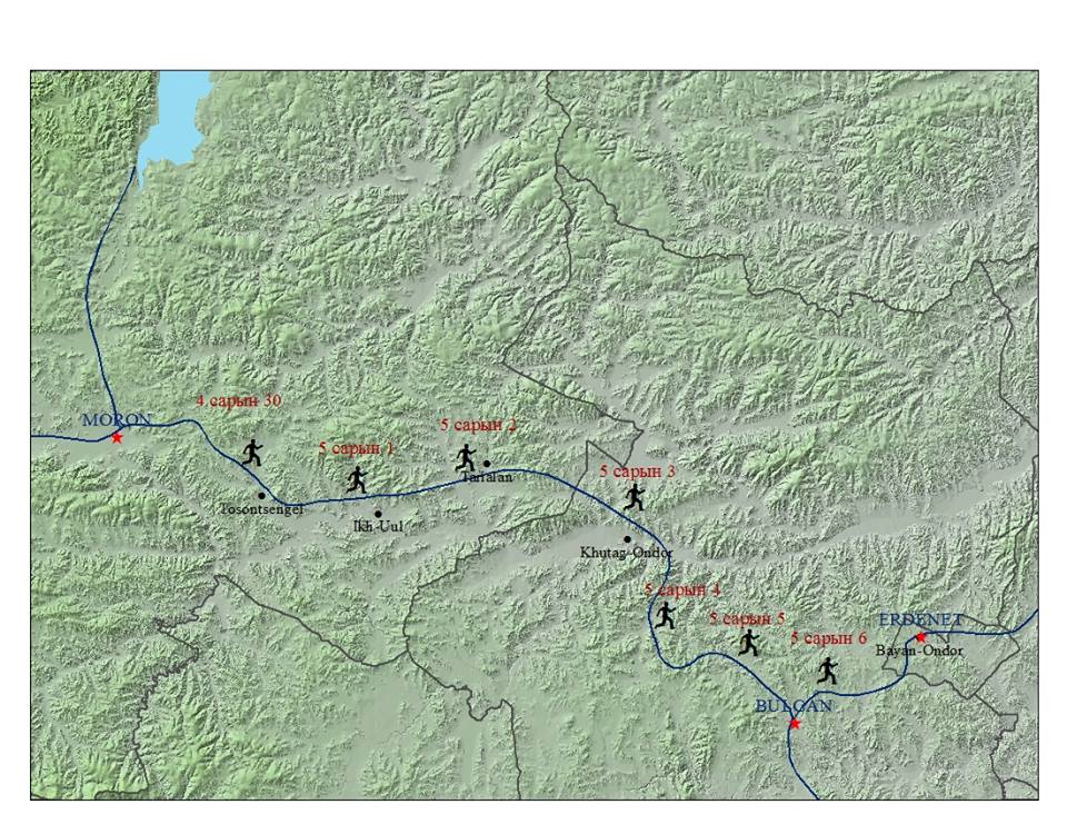 Тэрбээр Хөвсгөл аймгийн Тосонцэнгэл, Их-Уул сумдаар дайран Булган аймгийн Хутаг-Өндөр сум, улмаар Орхон аймгийн Баян-Өндөр суманд очихоор төлөвлөсөн байна.