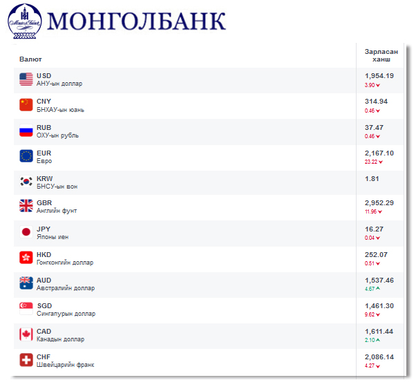 Өнөөдрийн байдлаар валютын ханш Монголбанк, арилжааны банкуудад ямар байгааг хүргэе.