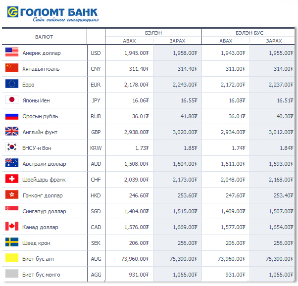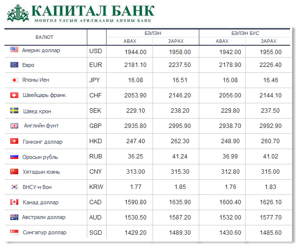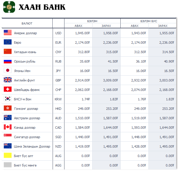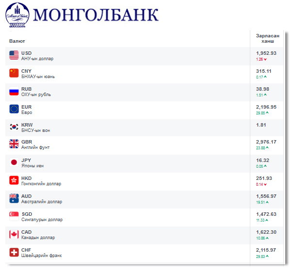 Өнөөдрийн байдлаар валютын ханш Монголбанк, арилжааны банкуудад ямар байгааг хүргэе.