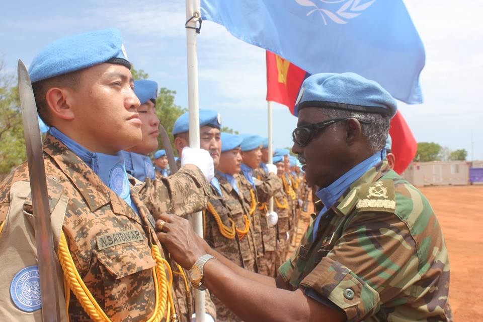 БНӨСУ дахь НҮБ-ын энхийг дэмжих ажиллагаанд үүрэг гүйцэтгэж буй хурандаа М.Батчулуун захирагчтай Монгол Улсын Зэвсэгт хүчний цэргийн багийн IV ээлжийн батальоны албан хаагчид НҮБ-аас олгодог "Энхийн төлөө" медалиар энгэрээ мялаалаа. Медаль гардуулах үеэр Хүчний командлагч Иоханес Гебремескел Тэсфамариам Монголын батальон хүчний хэмжээнд үлгэрлэн ажиллаж буйг онцлоод ажиллагааны үүрэг гүйцэтгэлт, бэлэн байдлыг хангах талаар багагүй ажил хийсэнд тань талархая гэсэн юм.
