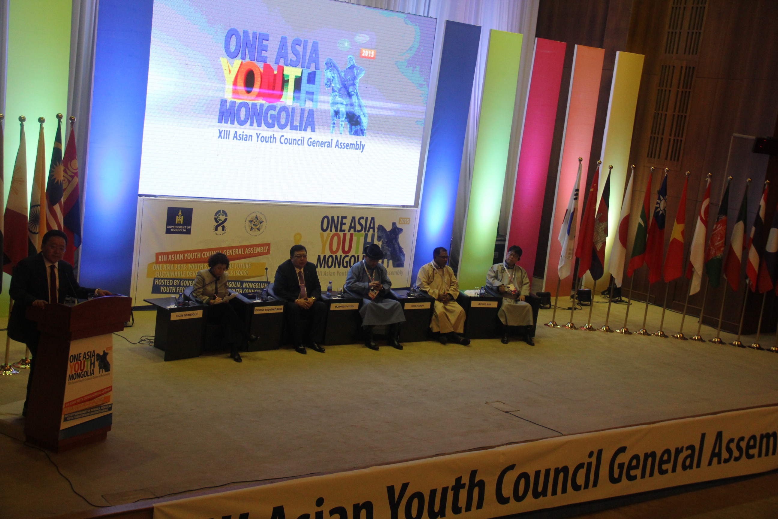 Монгол Улсын Засгийн газар, Азийн Залуучуудын Зөвлөл, Монголын Залуучуудын Холбоо хамтран Азийн Залуучуудын Зөвлөлийн XIII Ерөнхий чуулганыг “Нэг Ази 2015: Тогтвортой хөгжлийн зорилтод залуучуудын оролцоо” сэдвийн дор зохион байгуулж байгаа билээ.