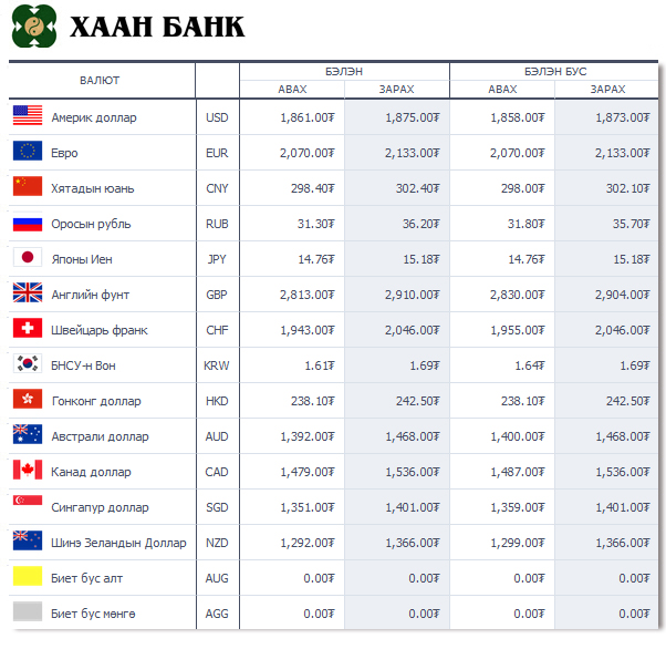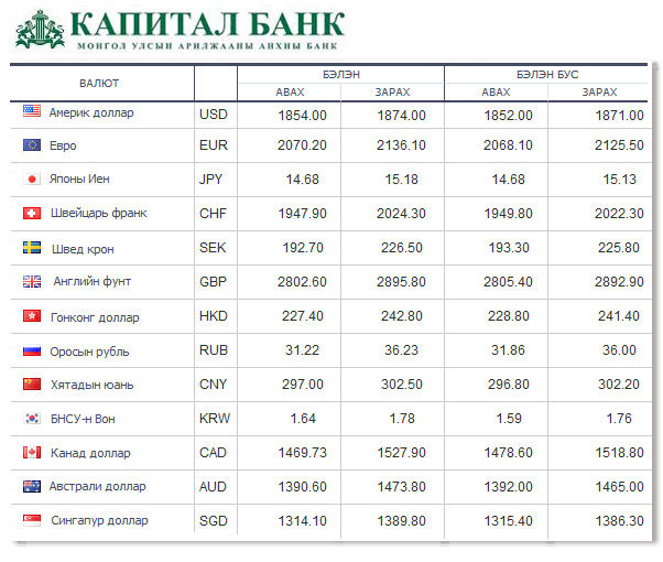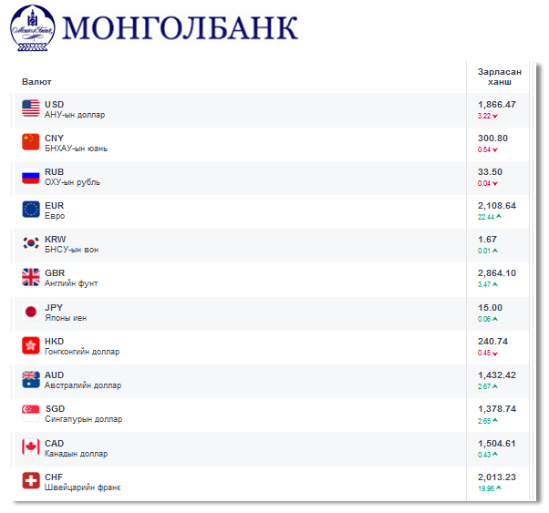 Өнөөдрийн байдлаар валютын ханш Монголбанк, арилжааны банкуудад ямар байгааг хүргэе.