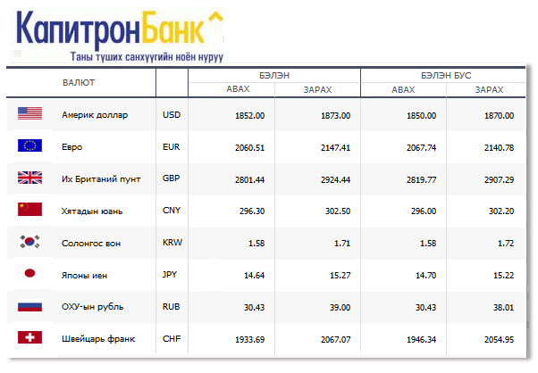 | Өнөөдрийн валютын ханш /2015.06.10/ | ||