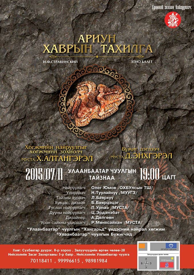 - 2015.07.11-ний 19:00 цагт "Ариун хаврын тахилга" этно балет,