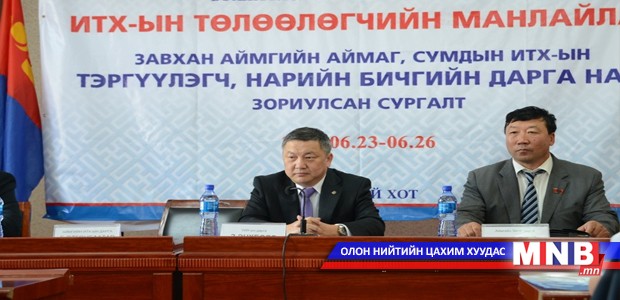 УИХ-ын дарга З.Энхболд сургалтыг нээж хэлсэн үгэндээ, 2012 оноос хойш НҮБ-тай ярилцаж, ИТХ-ын төлөөлөгчдийг чадавхжуулах ажлыг эхлүүлсэн. Энэхүү төслийн хүрээнд www.khural.mn цахим хуудас ажиллаж эхэлсэн. Цаашид УИХ-ын Тамгын газрынхан, НҮБ-ын сургагч багш нар аймаг сумдад хичээл заахаас гадна та бүхэн өөрсдөө алдаа оноогоо хэлэлцэж, төвлөрлийг сааруулах, орон нутгийн төлөөллийн болон хяналтын чиг үүргээ биелүүлэхэд онцгой анхаарч ажиллах хэрэгтэй. Цаашид шинэ төлөөлөгчид сонгогдон орж ирэхэд та бүхэн тэднийг сургах чадавхийг эзэмших нь чухал. Хүрэх гэж буй үр дүн бол үндэсний сургалтын механизмыг бий болгох юм. Та бүхэн сайн туршлагыг улс даяар дэлгэрүүлэх гэх мэт амьд ажлууд хийх хэрэгтэй. Бүх шатны түвшний ИТХ-ынхны өмнө шийдвэр гаргахад бүх нийтийн оролцоог нэмэгдүүлэх ажил нэн чухал. Иймээс сумандаа хийх ажлуудыг заавал тухайн суманд амьдарч буй иргэдээс санал авах ёстой.