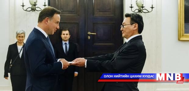 Монгол Улсаас Бүгд Найрамдах Польш Улсад суугаа Онц бөгөөд Бүрэн Эрхт Элчин сайд Н.Батаа Бүгд Найрамдах Польш Улсын Ерөнхийлөгч Анджей Дуда (Andrzej Duda )-д итгэмжлэх жуух бичгээ 2015 оны есдүгээр сарын 7-ны өдөр өргөн барив. Ёслолын ажиллагааны дараа Ерөнхийлөгч А.Дуда элчин сайдыг хүлээн авч уулзан баяр хүргэсний хариуд элчин сайд талархал илэрхийлж Монгол Улсын Ерөнхийлөгч Ц.Элбэгдоржийн халуун дотно мэндчилгээг уламжлав.
