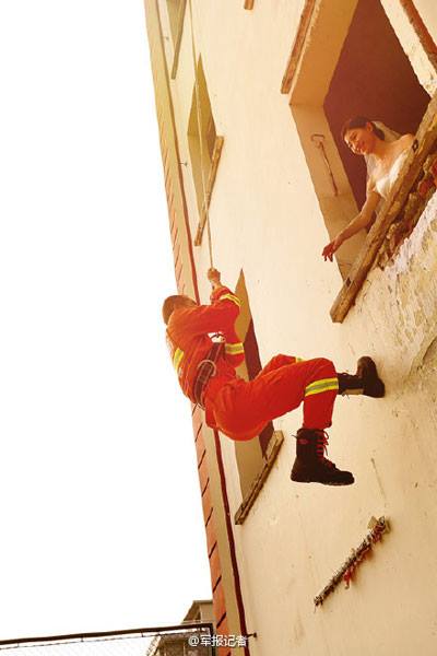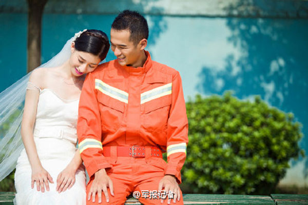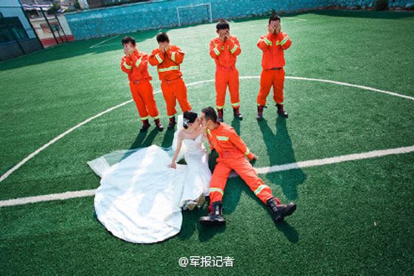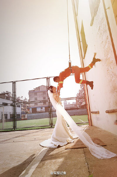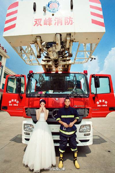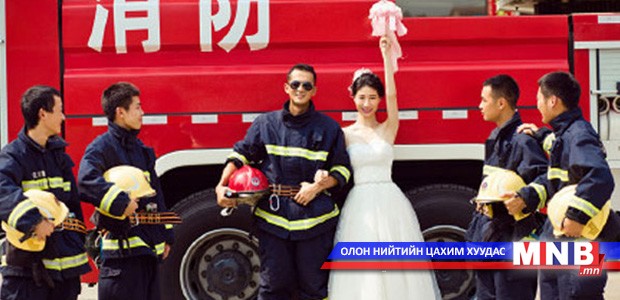 БНХАУ-д амьдардаг залуу хос гурван жил төлөвлөсөн хуримаа хийжээ. Тэгэхдээ тэд хуримынхаа зургийг маш өвөрмөцөөр авахуулахаар шийдсэн аж. Сүйт залуугийн хувьд гал сөнөөгч бөгөөд хуримын зургаа дүрэмт хувцастайгаа даруулсан бол бүсгүйн хувьд хуримын цагаан даашинзаар гангарчээ. Тэд сургалтын цамхагт, агаарын шатанд, гал унтраагч машины дэргэд зогсох зэргээр зургаа өвөрмөц өнгө төрхтэйгөөр авахуулсан бөгөөд энэ нь тэдэнд аз жаргалтай сайхан мэдрэмжийг төрүүлж байсан гэж хосууд ярьсан байна.