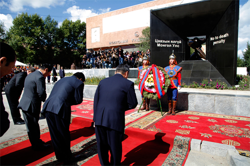 | Хэлмэгдэгсдийн хөшөөнд цэцэг өргөлөө | ||
