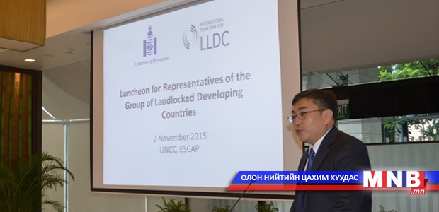 НҮБ-ын Ази, Номхон далайн орнуудын эдийн засаг, нийгмийн комисс (АНДЭЗНК)-оос далайд гарцгүй хөгжиж буй орнууд болон нэн буурай хөгжилтэй орнуудад зориулан зохион байгуулж буй “Ази, Номхон далайн орнуудын гадаадын шууд хөрөнгө оруулалтын сүлжээний тавдугаар хурал”-ын үеэр буюу 2015 оны 11 дүгээр сарын 2-ны өдөр тус хурлын төлөөлөгчдөд зориулан Бангкок дахь Элчин сайдын яам Далайд гарцгүй хөгжиж байгаа орнуудын олон улсын судалгааны төв /ДГХБО-ын ОУСТ/-тэй хамтран тус ОУСТ-ийн үйл ажиллагаа, зорилтыг танилцуулах арга хэмжээг Бангкок дахь НҮБ-ын байранд зохион байгуулав.