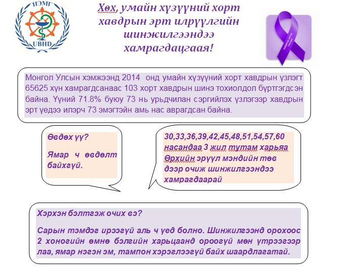 | Хөх, умайн хүзүүний хорт хавдрын эрт илрүүлгийн шинжилгээнд хамрагдаарай | ||