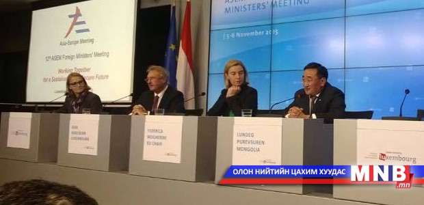 Гадаад хэргийн сайд Л. Пүрэвсүрэн“АСЕМ: Тогтвортой, аюулгүй ирээдүйн төлөө хамтын ажиллагаа” сэдвээр 11 дүгээр сарын 05-06-ны өдрүүдэд Люксембургийн Их Гүнт Улсад болсон АСЕМ-ын Гадаад хэргийн сайд нарын 12 дугаар уулзалтын хаалтын хуралдаан болон хэвлэлийн бага хуралд үг хэллээ.