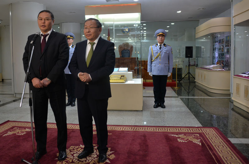 Хүндэтгэлийн ёслолын үеэр УИХ-ын Тамгын газрын Ерөнхий нарийн бичгийн дарга Б.Болдбаатар хэлсэн үгэндээ, жил бүрийн нэгдүгээр сарын 13-нд улс орон даяар тэмдэглэдэг шинэ Үндсэн хууль батлагдсаны өдрийг тохиолдуулан ардчилсан шинэ Үндсэн хуулийн уг эхийг Төрийн түүхийн музейд залж, иргэд олон нийтэд толилуулдаг уламжлалтай. Өнөөдрөөс эхлэн тав хоногийн хугацаатайгаар Төрийн түүхийн музейд байрлуулах Үндсэн хуулийн уг эхийг иргэд, олон нийт үзэж танилцах боломжтой гээд ардчилсан шинэ Үндсэн хуулиа туйлбартай сахиж, хүндэтгэж явахыг хүслээ.