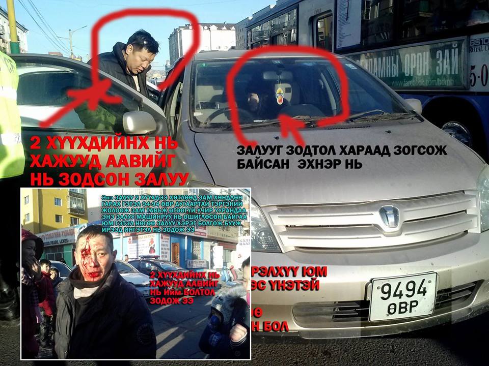 "Хоёр хүүхдээ хөтлөөд явган хүний гарцаар зам хөндлөн гарч байтал 94-94 ӨВР дугаартай машины жолооч зам тавьж өгөөгүй учир уурандаа машиныг нь цохисны төлөө жолооч гарч ирээд хүүхдүүдийнх нь нүдэн дээр аавыг нь ийнхүү хэрцгийгээр зодсон байна. Энэхүү балмад этгээдийг таньж мэддэг нь хуулийн байгууллагад нь мэдэгдэж зохих ёстой" гэсэн мэдээлэл олон нийтэд хүрсэн.