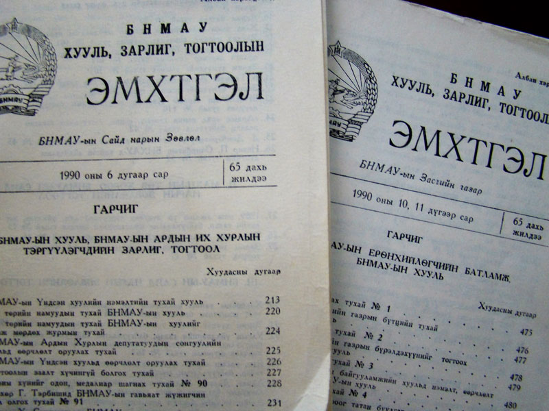 Монгол Улсад хууль тогтоомжийн албан ёсны анхны эмхэтгэл хэвлэж эхэлсний 90 жилийн ой энэ өдрүүдэд тохиож байна. Монгол Улсад хууль тогтоомжийг албан ёсоор хэвлэн нийтэлж ирсэн түүхийг сөхвөл, хууль тогтоомжийн албан ёсны эмхэтгэл /“Албан сэтгүүл”/-ийг 1926 оноос өдгөө хүртэл бараг тасралтгүй 90 жил хэвлүүлж ирсэн байна.