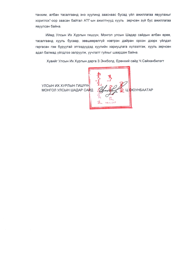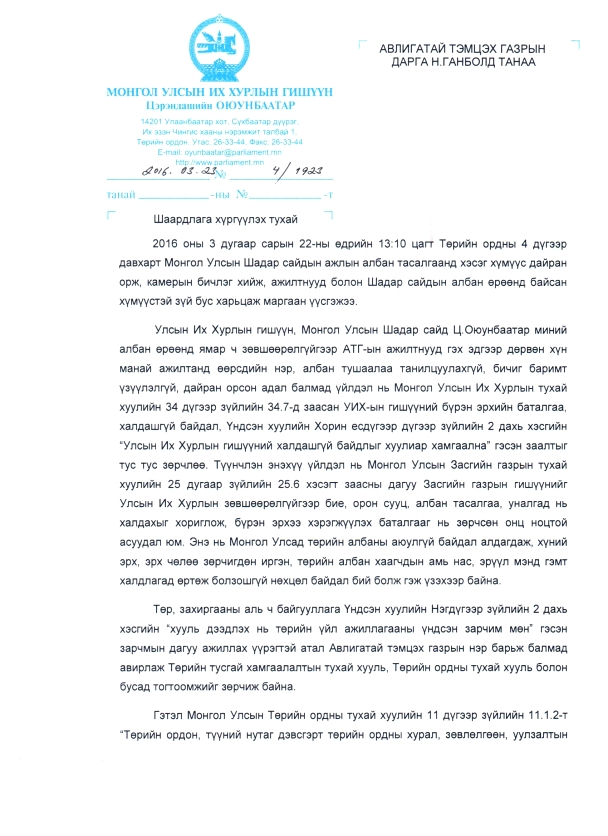 | Ц.Оюунбаатар АТГ-т албан шаардлага хүргүүлжээ | ||