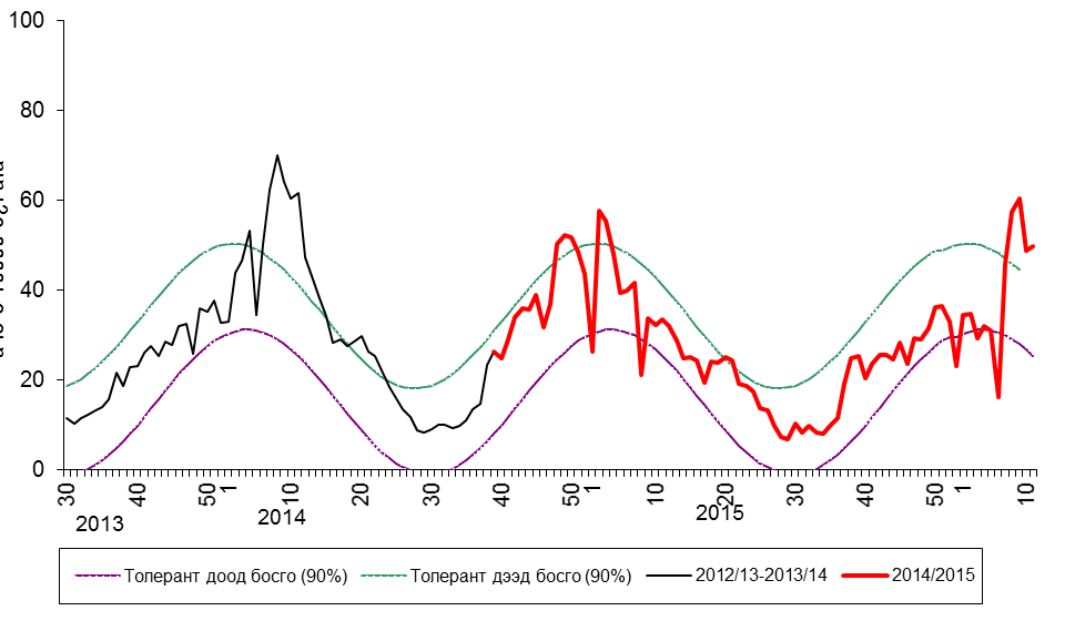 Баянгол дүүрэг, Багануур хот болон Дорнод, Дундговь, Өмнөговь аймагт томуу, томуу төст өвчин 10 хувиас дээш хувийг эзэлж байгаа аж. Мөн ХӨСҮТ-д нийт 120 сорьц хүлээн авч шинжлэхэд 19 (15.8%) сорьцонд В вирус, 1 (0.8%) сорьцод A(H1N1)pdm09 вирусын ген, иж томуу илрүүлэх шинжилгээний дүнгээр 10 (71%) сорьцод респиратор-синцитиаль вирус, 2 (14%) сорьцод риновирус, 1 (7%) сорьцонд хүний метапневмовирус тус тус илэрчээ.
