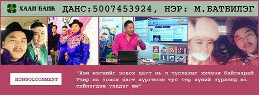 | “Монгол коммент” нэвтрүүлгийн хөтлөгч М.Батбилэгт туслахыг уриалав | ||