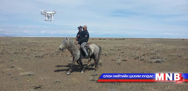 | Увс аймгийн морьт эргүүлийн алба хаагчид нисдэг камер ашиглаж байна | ||