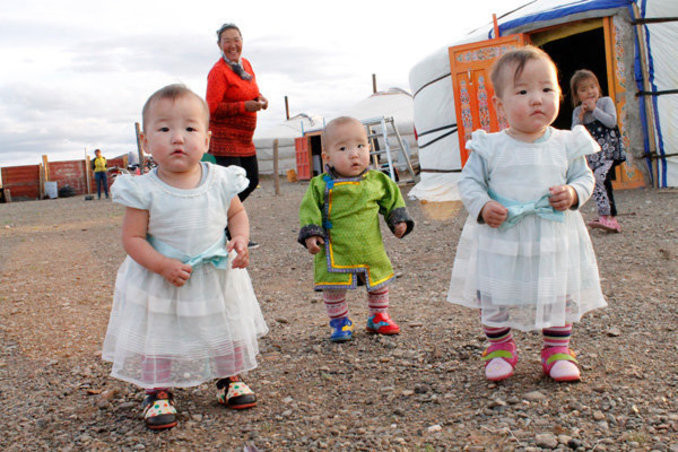 БНСУ-д Монголын гурван ихэр охин мэндэлжээ