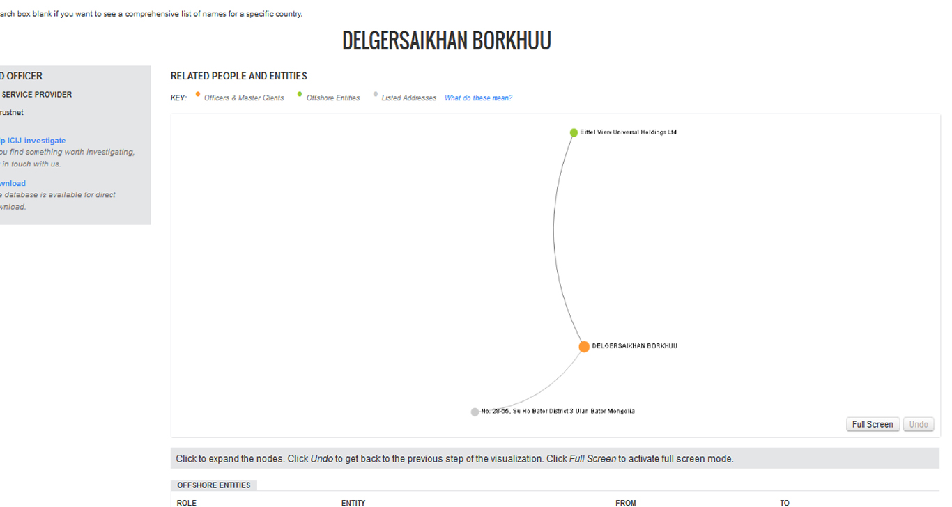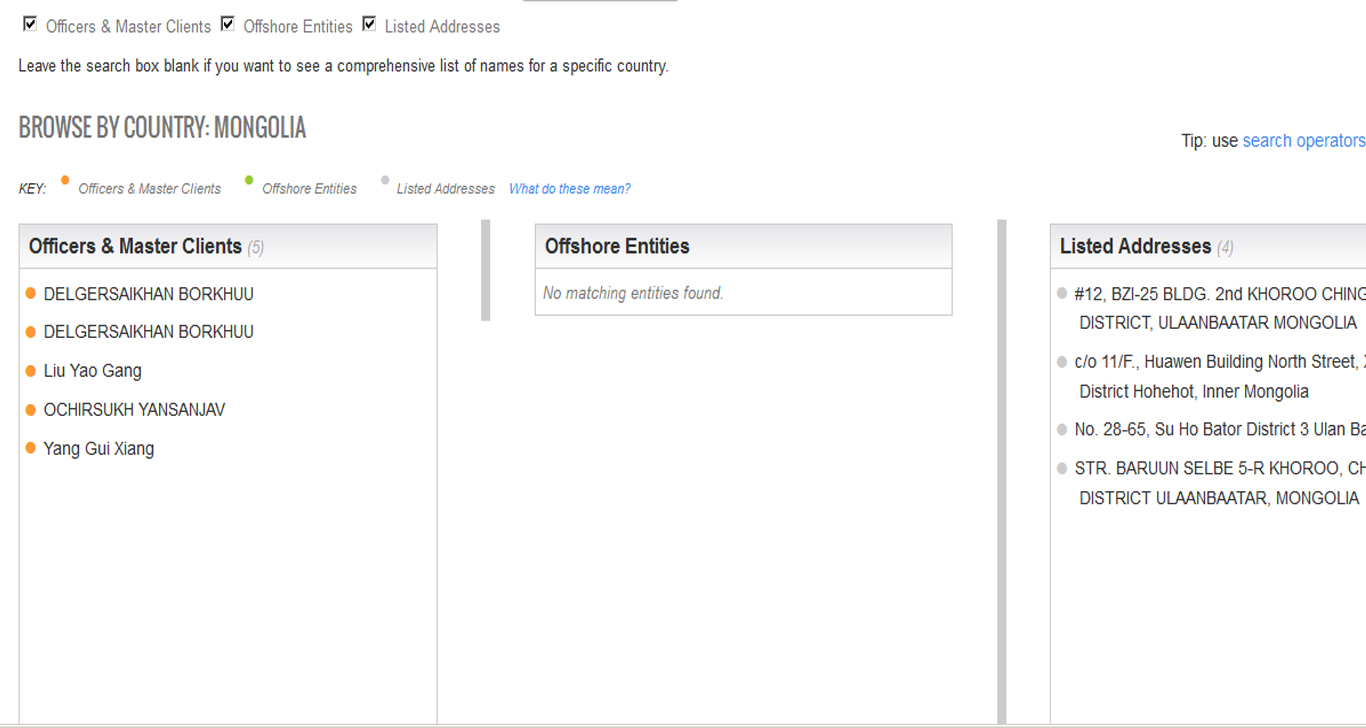 Мөн Монгол Улсын нэр дээр бүртгэлтэй Хятадын хоёр иргэний оффшор дансны мэдээллийг оруулжээ.