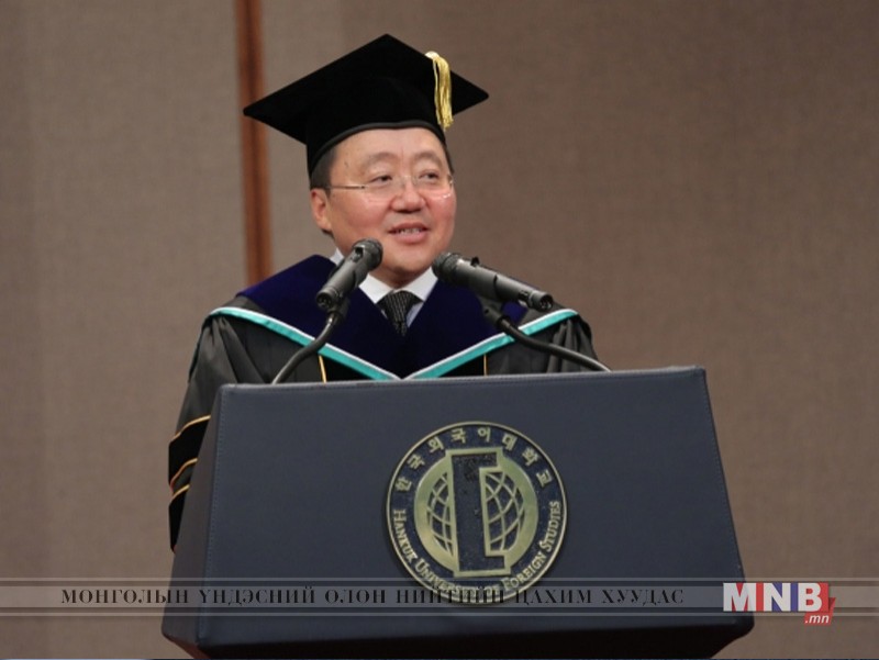Өчигдөр Сөүл хотын Хүндэт иргэн гэдэг хүндэтгэлийг хүлээсэн. Өнөөдөр бас энэ алдартай сургуулийн Хүндэт доктор болж байна. Ачаа их нэмэгдэж байна. Манай хоёр орон бол эртний түүхтэй, уламжлалт харилцаатай, бие биенээ хүндэтгэдэг ийм сайхан улс орнууд. Төрөхдөө бид хөх толботой төрдөг. Монголчууд тэр хөх толбыг тэнгэрийн тамга гэж нэрлэдэг. Нэгэнт тэнгэрийн тамгатай учраас бид тэнгэр заяат ард түмэн гэж өөрсдөөрөө бахархдаг. Монгол хүн бүр Монгол Улсын иргэн болж, монгол хүн болж төрснөөрөө бахархаж явдаг. Бид өөрсдийнхөө эх орон, газар шороогоороо бахархдаг. Бид өөрсдийнхөө аугаа түүхээр их бахархдаг. Мөн тэр аугаа их түүхийг бүтээсэн ард түмэн, үе үеийн өвөг дээдсээр бахархаж явдаг. Тэр аугаа их түүхэнд бидний гайхамшигтай өвөрмөц уламжлал, өв соёл байдаг. Монголчууд тэр гайхамшигтай уламжлал, өв соёлоороо маш их бахархаж явдаг юм аа.