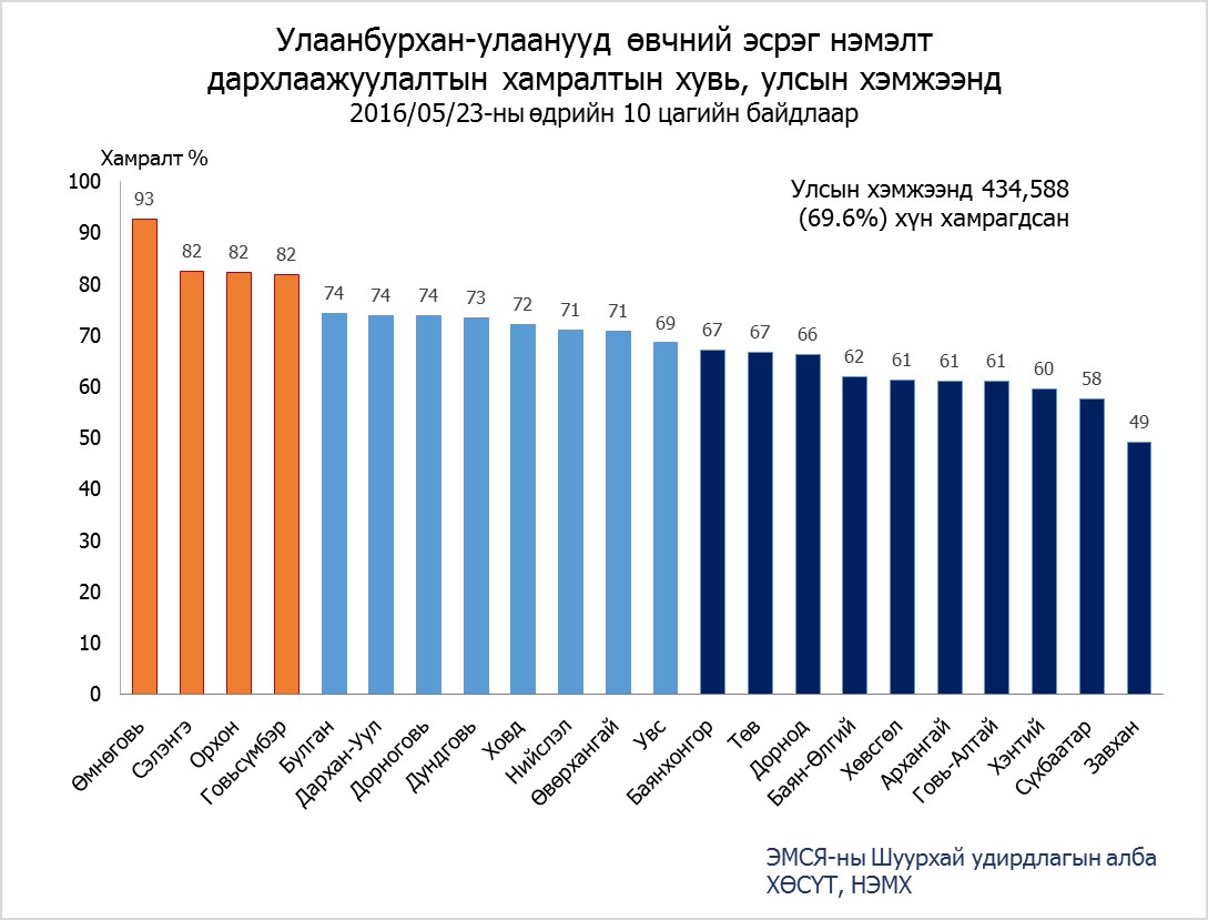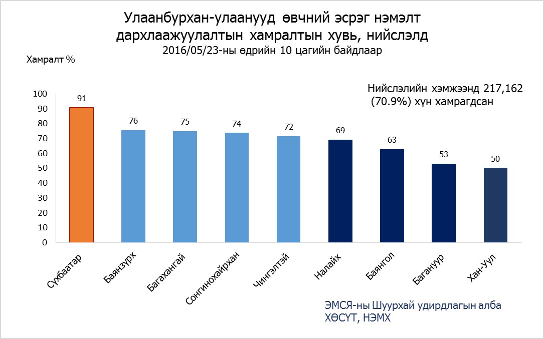 Нийслэлийн тухайд нийт залуусын 70 хувь нь хамрагдсан байна.
