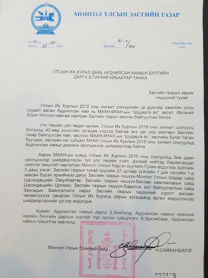 Өнгөрөгч 2012 УИХ-ын сонгуулиар Ардчилсан нам МАХН-МҮАН-ын “Шударга ёс” эвсэл, Иргэний Зориг Ногоон намтай хамтран Засгийн газрыг байгуулсан. Гэсэн хэдий ч 2016 оны УИХ-ын сонгууль болохын өмнө “Шударга ёс” эвслийн бүлэг татан буугдсан. Улмаар МҮАН сонгуульд АН-ыг дэмжиж оролцохоо илэрхийлээд байгаа. Харин МАХН сонгуульд бие дааж оролцох шийдвэр гаргасан юм. Тиймээс Ерөнхий сайд МАХН-ын сайд нарыг Засгийн газраасаа гаргахыг хүссэн ажээ.
