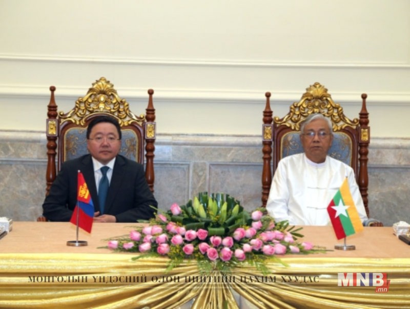 Албан ёсны хэлэлцээний дараа Монгол Улсын Ерөнхийлөгч Ц.Элбэгдорж, Мьянмарын Холбооны Бүгд Найрамдах Улсын Ерөнхийлөгч Тин Чяу нар хоёр талын баримт бичигт гарын үсэг зурах ёслолд оролцлоо. Ёслолын үеэр Соёлын салбарт хамтран ажиллах тухай Монголын Боловсрол, соёл, шинжлэх ухааны яам, Мьянмарын Шашны харилцаа, урлагийн яам хоорондын Харилцан ойлголцлын санамж бичигт гарын үсэг зурав.