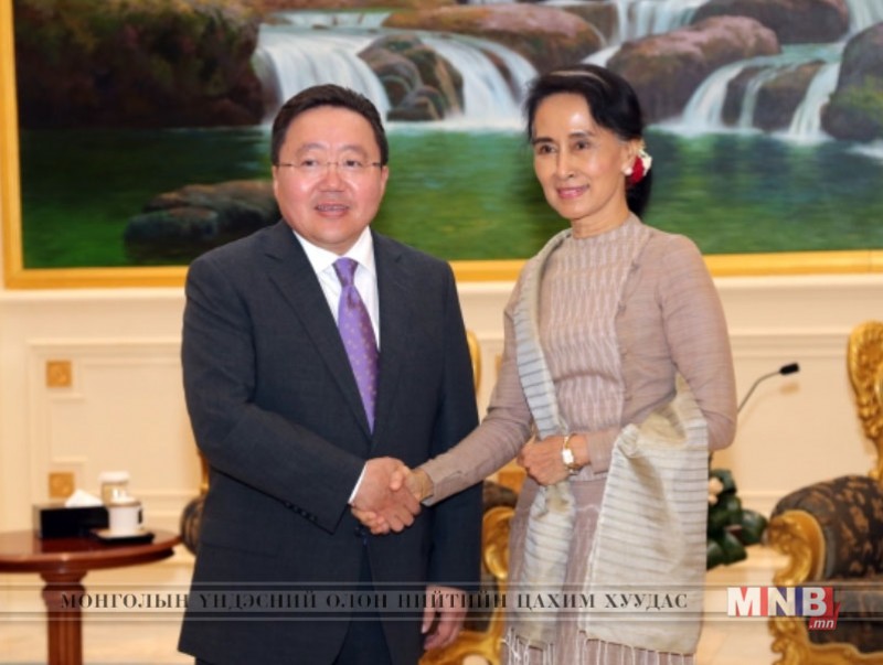 Мьянмарын Холбооны Бүгд Найрамдах Улсад ажлын айлчлал хийж буй Монгол Улсын Ерөнхийлөгч Ц.Элбэгдорж өнөөдөр Мьянмарын Төрийн зөвлөх бөгөөд Гадаад хэргийн сайд Аунг Сан Сү Чийтэй уулзлаа.