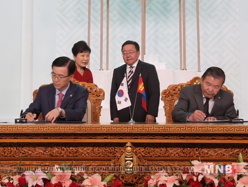 БНСУ-ын Ерөнхийлөгч Пак Гын Хэ-гийн Монгол Улсад хийж байгаа албан ёсны айлчлалын үеэр баримт бичгүүдэд гарын үсэг зурах ёслол Төрийн ордны Ёслол, хүндэтгэлийн их танхимд боллоо.