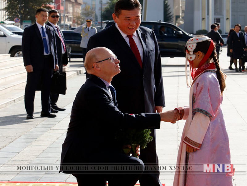 Монгол Улсын Их Хурлын дарга М.Энхболд Монгол Улсад албан ёсны айлчлал хийж буй Канад Улсын парламентын Нийтийн танхимын дарга Жиофф Рэганыг өнөөдөр Их эзэн Чингис хааны хөшөөт цогцолборын өмнө угтан мэндчиллээ.