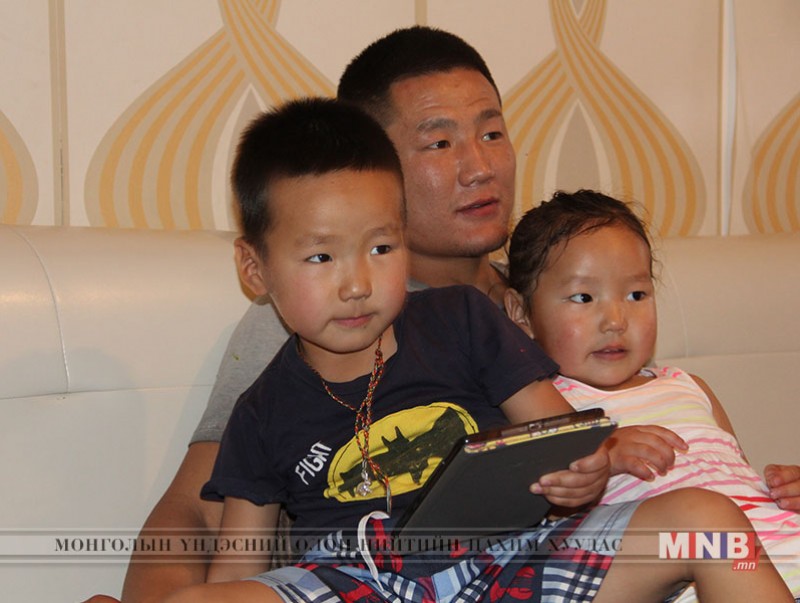 Тэрбээр “Саяхан л гэртээ орж ирлээ. Эхнэрээрээ жаахан хоол хийлгүүлж байх зуураа хүүгийнхээ хичээлийг давтуулж байна. Хүү маань сар гаруйн өмнөөс Орос цэцэрлэгт явж байгаа” гээд цээжлэх үгийг нь давтуулна. Энэ үед гэргий нь хүрэн шилэн аяганд цай аягалж, харин бага охин нь аав, ах хоёрынхоо цаана суугаад биднийг үл анзааран тоглож байв. Үе, үе ааваасаа ямар нэгэн зүйл шалгааж байхыг нь харахад нэлээн эрх бололтой. Харин хүү нь хичээлээ хийж байгаа хэрнээ гулсуур дээр тоглож буй аятай буйдангаас гулгах, хөл гараа байнга хөдөлгөх нь их хөдөлгөөнтэйг нь илэрхийлж байлаа.