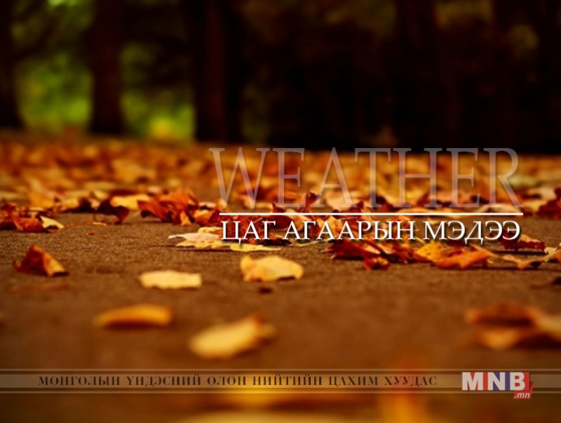 ТӨВИЙН АЙМГУУДЫН НУТГААР: Солигдмол үүлтэй. Хур тунадас орохгүй. Салхи зүүн өмнөөс секундэд 6-11 метр. Хангай, Хөвсгөл, Хэнтэйн уулархаг нутгаар шөнөдөө 11-16 хэм, өдөртөө 0-5 хэм, бусад нутгаар шөнөдөө 5-10 хэм хүйтэн, өдөртөө 1-6 хэм дулаан байна.