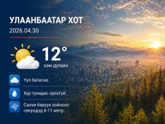 ЦАГ АГААР: Улаанбаатарт өдөртөө 12 хэм дулаан